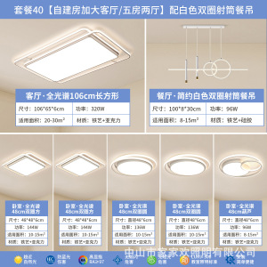 护眼套餐40【自建房加大客厅-5房2厅】大客厅配白色双圈射筒餐吊