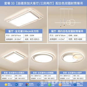 护眼套餐32【自建房加大客厅-3房2厅】大客厅配白色三环餐吊