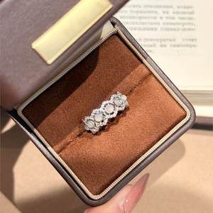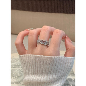 中古镂空满钻蛋面白玉髓戒指女款爆闪食指戒轻奢高级感波浪戒代发