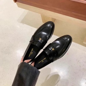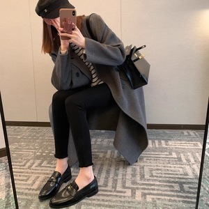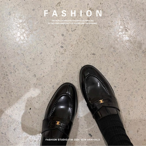 头层牛皮小皮鞋粗跟苏茵茵鞋懒人乐福鞋女凯旋门一脚蹬同款金扣
