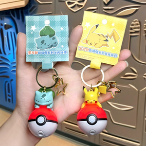 正版发光精灵球系列宠物小精灵钥匙扣书包汽车挂件皮卡丘宝可梦男
