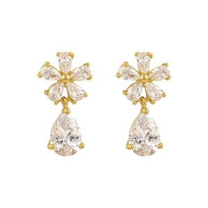 水滴锆石花朵银针耳钉女轻奢气质高级感耳坠新款小众设计感耳饰品