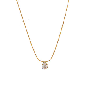跨境单钻水滴钻项链钛钢镀18K金不掉色简约精致锁骨链小众设计感