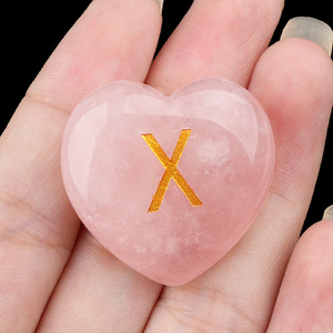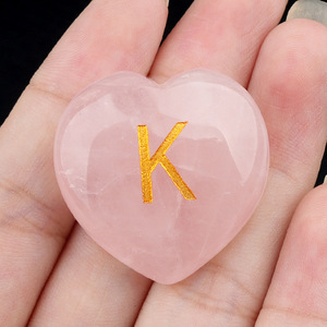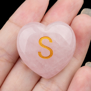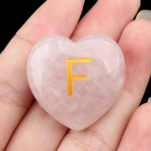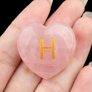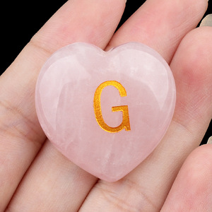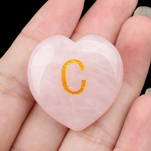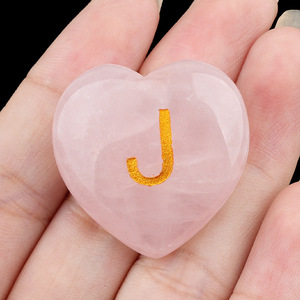 2331-天然粉水晶爱心26个字母半宝石工艺品家居装饰品英文小摆件