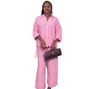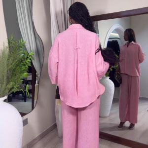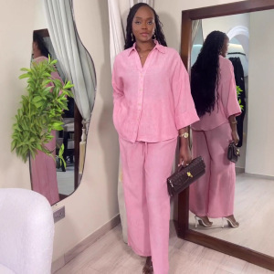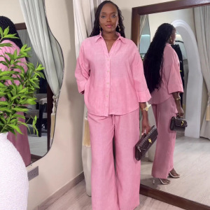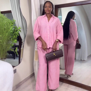 欧美女装套装纯色翻领开衫衬衫休闲阔腿长裤非洲时尚休闲两件套女