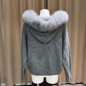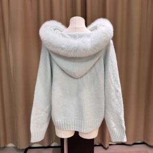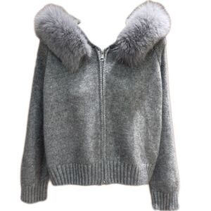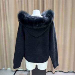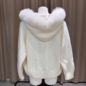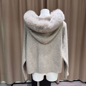 实拍2025连帽大毛领毛衣女狐狸毛新款时尚百搭针织衫加厚上衣外套