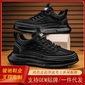 2025四季新款纯色男鞋皮面透气工装鞋厚底鞋耐磨耐脏男式休闲板鞋