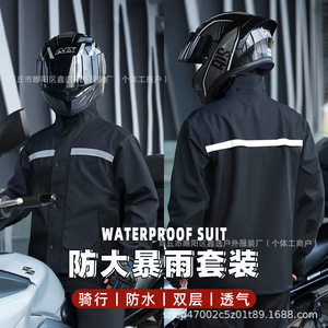 雨衣防暴雨套装男女电动车外卖骑手分体式加厚骑行反光防水雨衣披