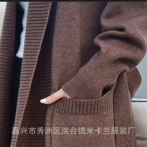 2025纯色腰带长款开衫宽松长袖毛织休闲外套毛衣百搭新款针织衫