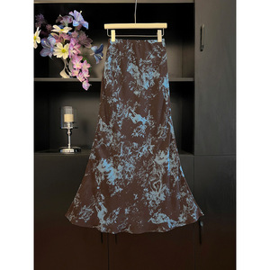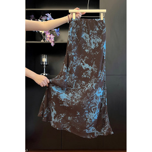 三标齐全 天猫品质 五线打边 晕染印花薄款斜裁鱼尾半身裙