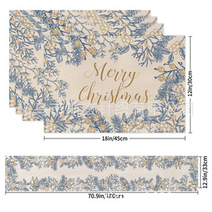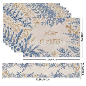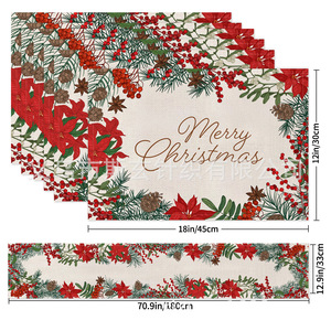 热销新款圣诞长条桌旗亚麻印花餐垫桌旗组合套装节日装饰餐厅桌布