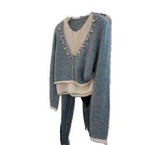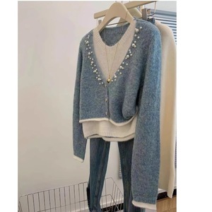 灰色叠穿假两件上衣女套头气质针织衫毛衣慵懒风设计感小众2025新