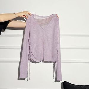 香芋紫防晒罩衫长袖开衫T恤女夏季薄款抽绳收腰设计绝美漂亮上衣