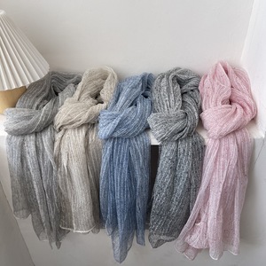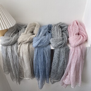 百搭纯色棉麻围巾女春秋薄款冬季学生韩版夏季褶皱日系围脖小丝巾