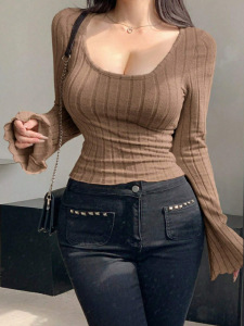 2025年新款现货款欧美装跨境爆款时尚磨毛坑条长袖上衣