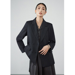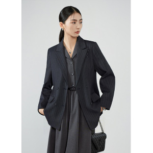 老钱B备条纹经典戗驳领小西装女2025秋季新款高级感西服外套上衣