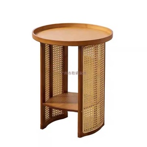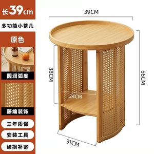 藤编茶几客厅沙发边几床头边柜创意圆茶桌阳台小桌子日式简约角几