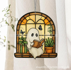 2d万圣节幽灵亚克力窗户悬挂装饰,植物爱好者的礼物 哥特风