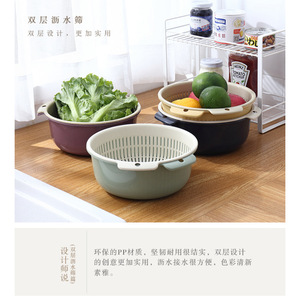 双层沥水篮 家用洗菜盆加大塑料厨房洗菜篮子洗水果盆客厅水果盘
