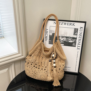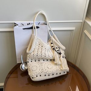 流苏编织包托特包女2025夏季新款小众镂空棉线包休闲单肩包手提包