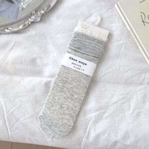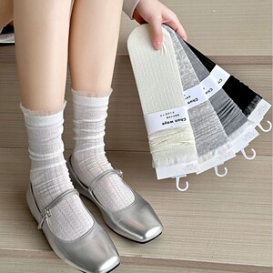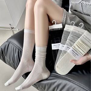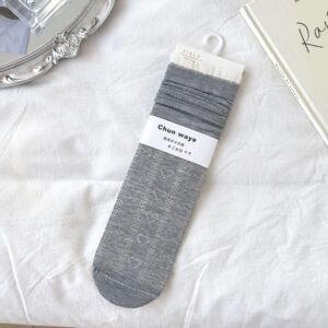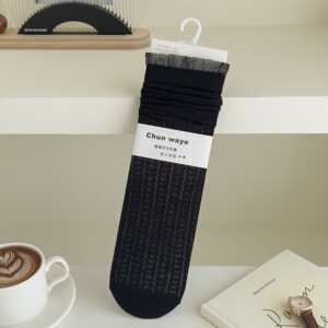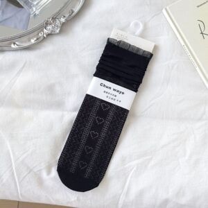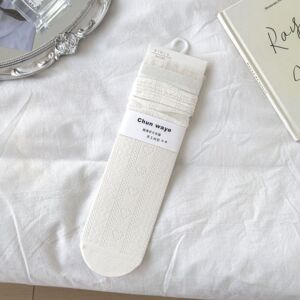 堆堆袜子女夏季超薄款白色蕾丝花边jk棉袜镂空网眼蝴蝶结爱心长袜