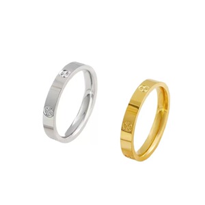 银誓 999新款金色素圈米字钻纹戒指不掉色小众设计情侣对戒送礼物