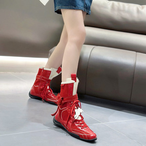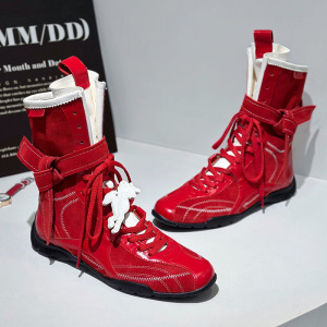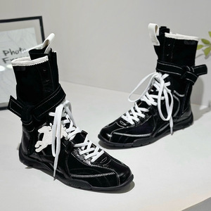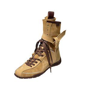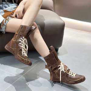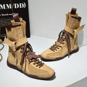 2025秋季马丁靴女复古内增高棕色拳击靴磨砂皮圆头系带运动靴短靴