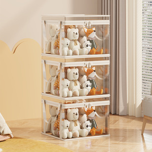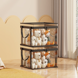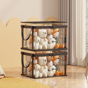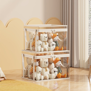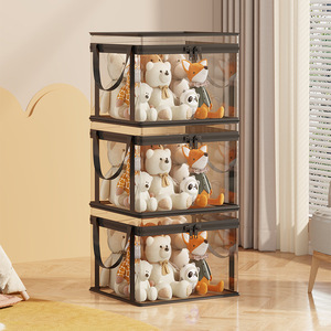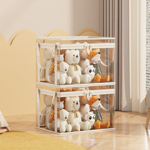 透明娃娃收纳桶毛绒玩偶布储物箱防尘装儿童玩具公仔整理箱神器