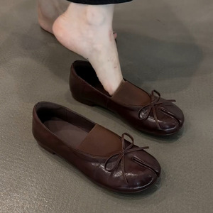 羊皮版~法式蝴蝶结分趾鞋猪蹄鞋女通勤松紧带平底复古芭蕾鞋单鞋