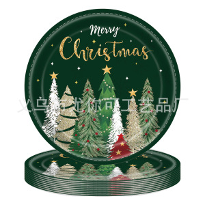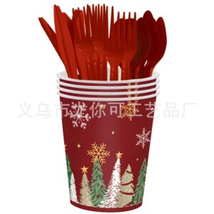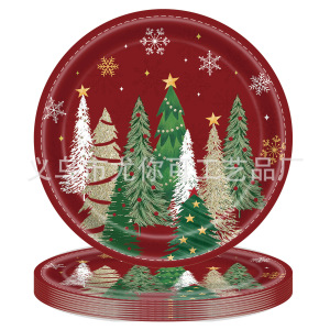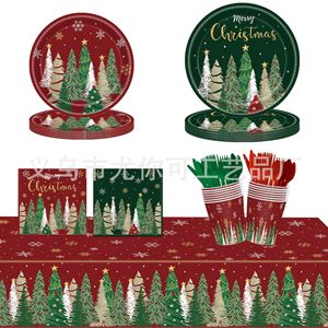 跨境新款红绿圣诞狂欢夜主题派对一次性桌布纸盘餐具套装生日聚会