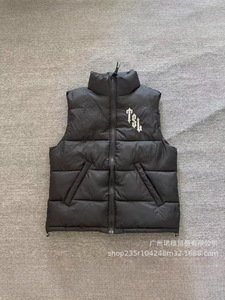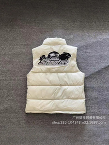 跨境外贸T马甲男短款棉服保暖刺绣绗线虎头美式男女同款马甲坎肩