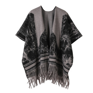新款水墨画披肩高级感旅游装饰外搭披肩长款复古斗篷流苏披风穿搭