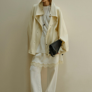 CHIC轻薄油蜡感高密全棉府绸 极简垂荡立领蝙蝠袖挺阔A型风衣