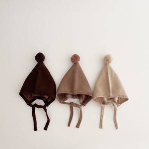 儿童帽子秋冬韩系ins宝宝毛球系带帽护耳帽女童穿搭帽洋气尖尖帽