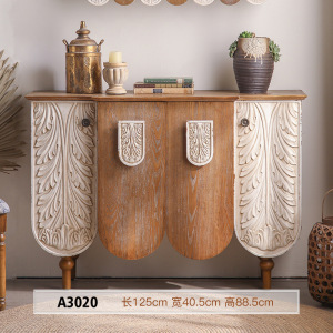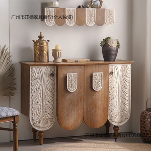 复古浮雕玄关柜美式乡村入户创意柜子店铺做旧边柜装饰柜玄关柜