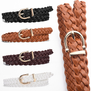 跨境新款文艺青年编织皮带复古针扣休闲女士腰带工厂现货细腰带