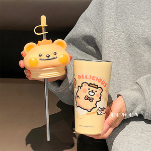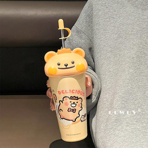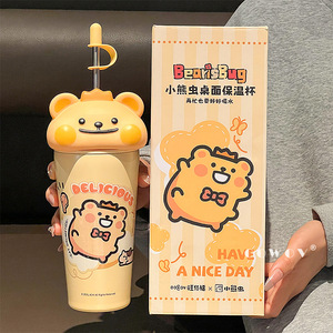 小熊虫吸管保温杯女生2025新款高颜值大容量冰霸水杯子家用办公室
