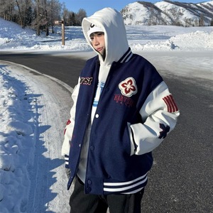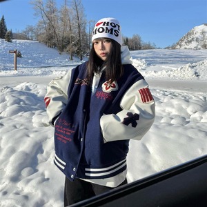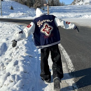 美式重磅高街刺绣情侣棒球服2025年新款复古vintage宽松潮牌外套