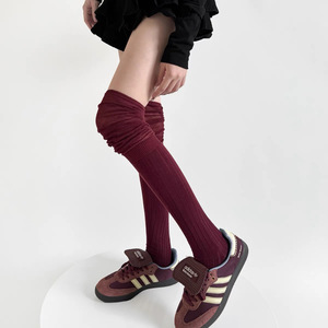 秋冬双针长筒袜过膝袜女女奶白色高筒袜大腿袜日系女士拼接堆堆袜