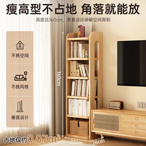 实木书架胡桃色置物架落地一体靠墙窄缝柜储物柜家用转角简易书柜
