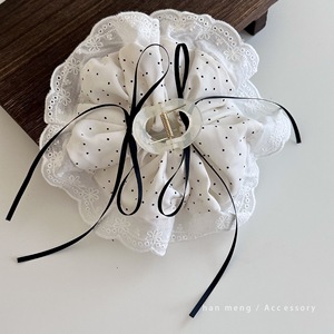 白色蕾丝波点蝴蝶结抓夹(两用可拆卸)
