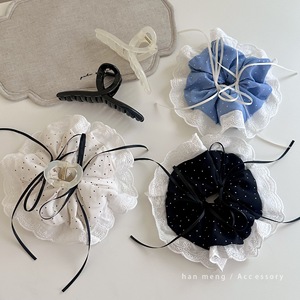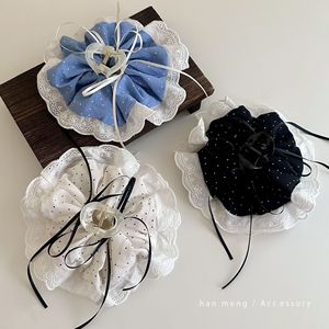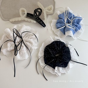 百搭法式蕾丝波点蝴蝶结大肠发圈抓夹女新款高级气质盘发鲨鱼发夹