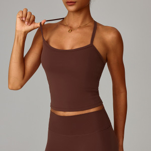 欧美冬季磨毛美背瑜伽背心速干健身上衣可外穿跑步运动背心女8519