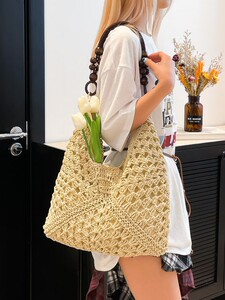 夏天草编包包女2025新款海边度假沙滩镂空单肩托特包编织菜篮子包