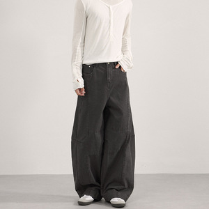 LKTM男装 美式vintage解构工装弯刀裤男女宽松廓形慵懒感休闲长裤