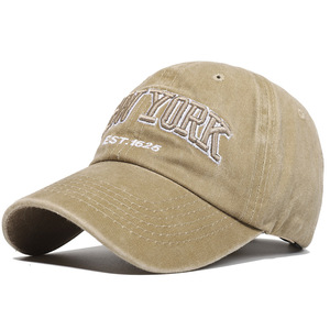 棒球帽男刺绣复古做旧水洗休闲鸭舌帽女春夏季街头百搭弯檐遮阳帽