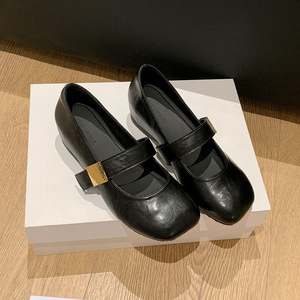 小个子内增高5cm浅口单鞋女2025夏季新款复古方头一字扣玛丽珍鞋