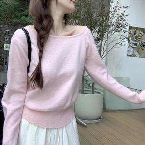 一字肩毛衣女秋冬季2025新款韩系慵懒超好看高级感露肩针织衫上衣