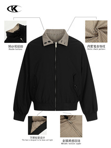 11KN美式千鸟格双面夹克男女短宽boxy潮休闲简约显瘦宽松长袖外套