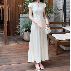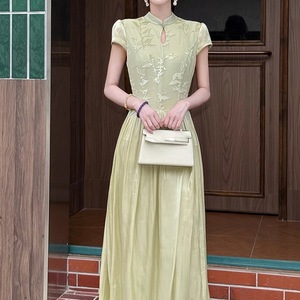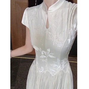 女款夏【云纱绣影】新中式国风植绒拼接改良旗袍镂空连衣裙半圆襟